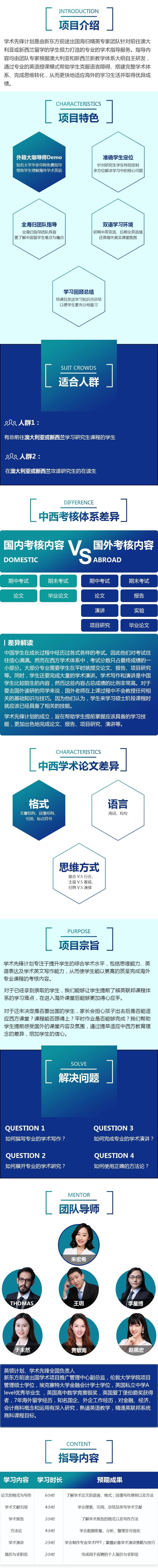 提升学生的综合学术水平,包括思维能力、英语表达及学术英文写作能力,从而使学生能以更高的质量完成海外专业课程的考核内容。