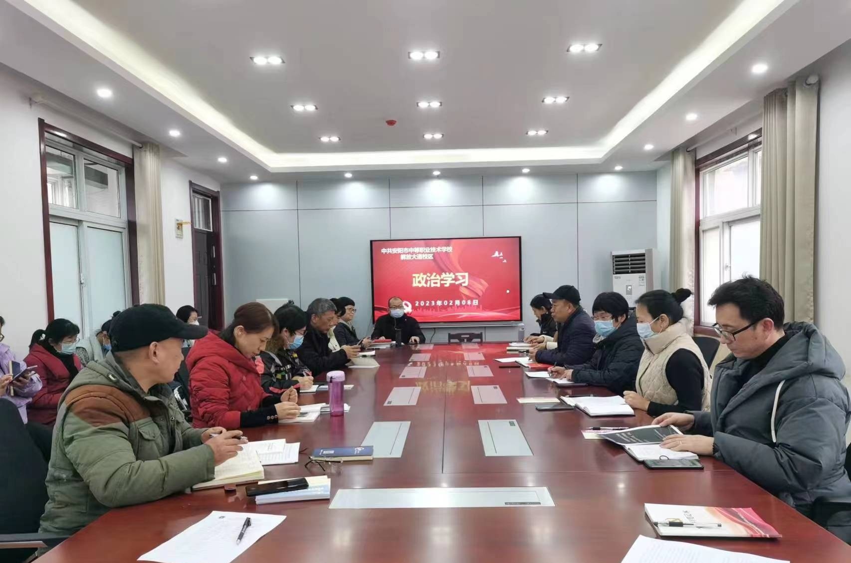 为深入学习贯彻党的二十大精神,切实做好新学期开学工作,奋战“开门红”,实现“全年红”,根据学校工作安排,2月8日下午解放大道校区全体教职工在二楼会议室举行了学部次政治学习,会议由支部书记原继斌同志主持,校党委委员、纪检书记武国琼列席了会议。