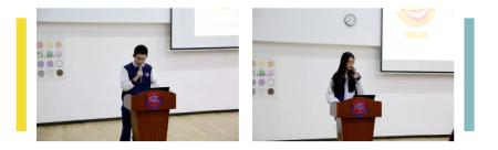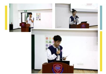 一场以口语表达为实战利器,思想阐述为点睛之笔的唇枪舌战之争拉开了比赛的序幕,选手们各展口才,围绕三个不同的选定话题娓娓而谈,流畅自如的英文谈遍风云,极尽魅力与自信。