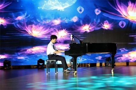 用梦想奏响青春之曲,钢琴王子谢培东同学为全体师生带来一曲《梁祝》,优美的旋律,动人的音符,为本次开学典礼带来极具魅力的听觉盛宴。