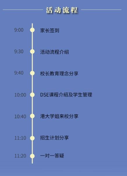 本次活动中,我们邀请了内地首个通过DSE考上香港大学的刘瀛生同学分享她的成功经验,本校校长及教师也将出席该次活动,给广大家长朋友以更深层次的教学资讯分享。