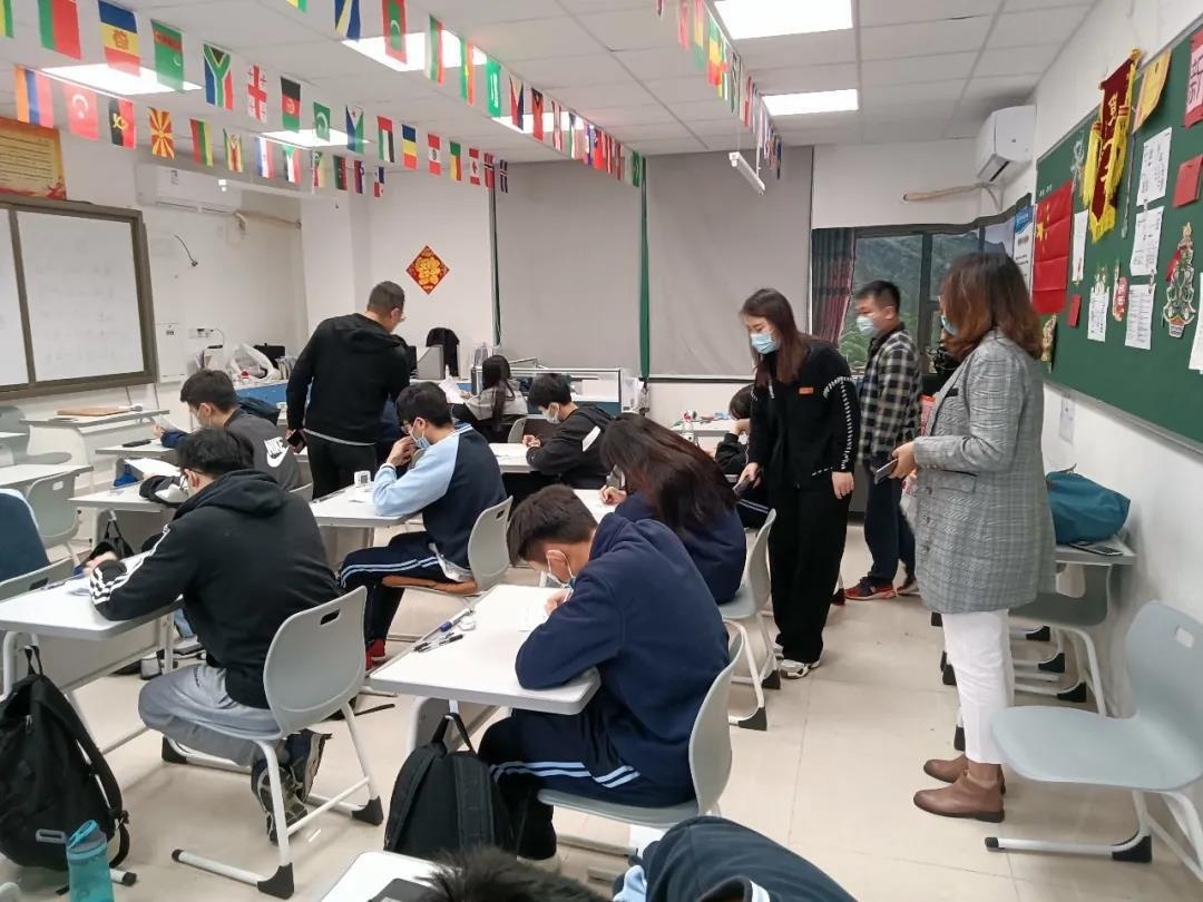 戴校长、Sam校长、Coco校长、关校长、宋主任、葛主任在巡考。检查监考规则和考场纪律的执行情况。