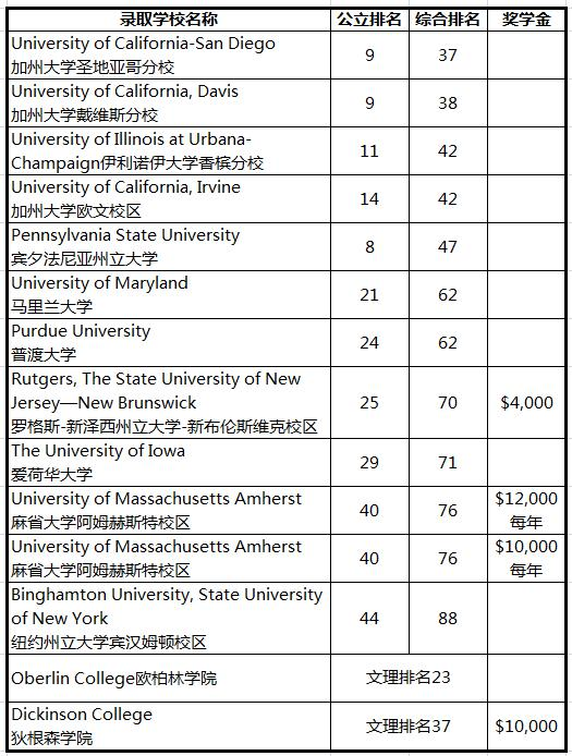 备注:此表为总体情况说明,被同一所大学录取的多位同学不在表格里一一赘述。