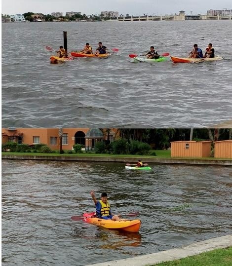 在sailing课上,孩子们学习了皮划艇的航行,大家互相帮助,把皮划艇抬到海里,然后亲自驾驶在大海里航行。