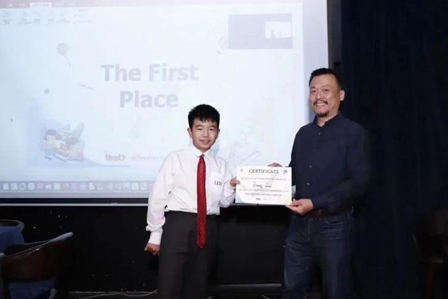 Jimmy对待学习和生活都专心致志和充满热情,做任何事情都会投入程度的努力。他在各科表现都很出色,特别是在英语方面。在去年10月份,Jimmy在That’s及Urban Family举办的全国英文写作竞赛中,凭借创意短篇小说赢得名,然后又在上个学期的演讲竞赛中,凭借鼓舞人心的英语演讲赢得冠军。