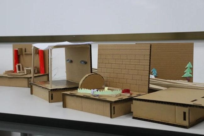 在设计与技术课堂上,学生们研究莎士比亚戏剧舞台设计的奥妙。
